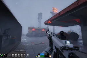 Силы восстановлены, и я поднимаюсь на лифте, чтобы обнаружить себя в стыковочном ангаре с лодкой, которая сыграет ключевую роль в моём путешествии. События игры разворачиваются в будущем, где климатическая катастрофа превратила мир в океан, и мне нужно перемещаться между оставшимися над уровнем воды строениями. Я должен запитать оставшуюся часть ангара, чтобы открыть док и подготовить лодку к плаванию.
